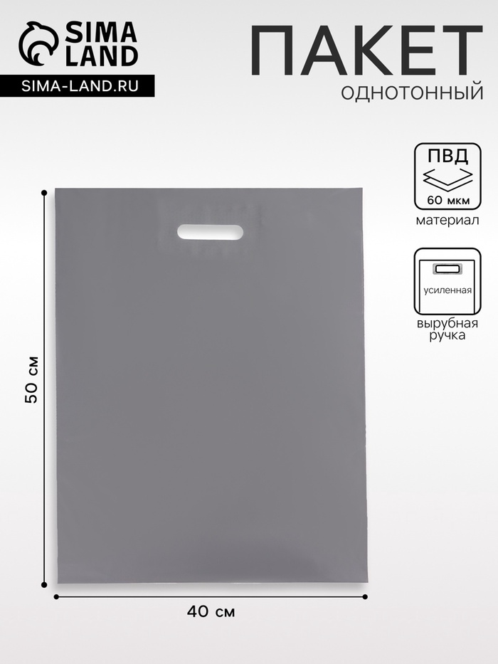 Пакет полиэтиленовый с вырубной ручкой, серебряный 40-50 См, 60 мкм