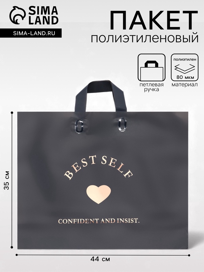 Пакет с петлевой ручкой черный 44×35×8 см 80 мкм