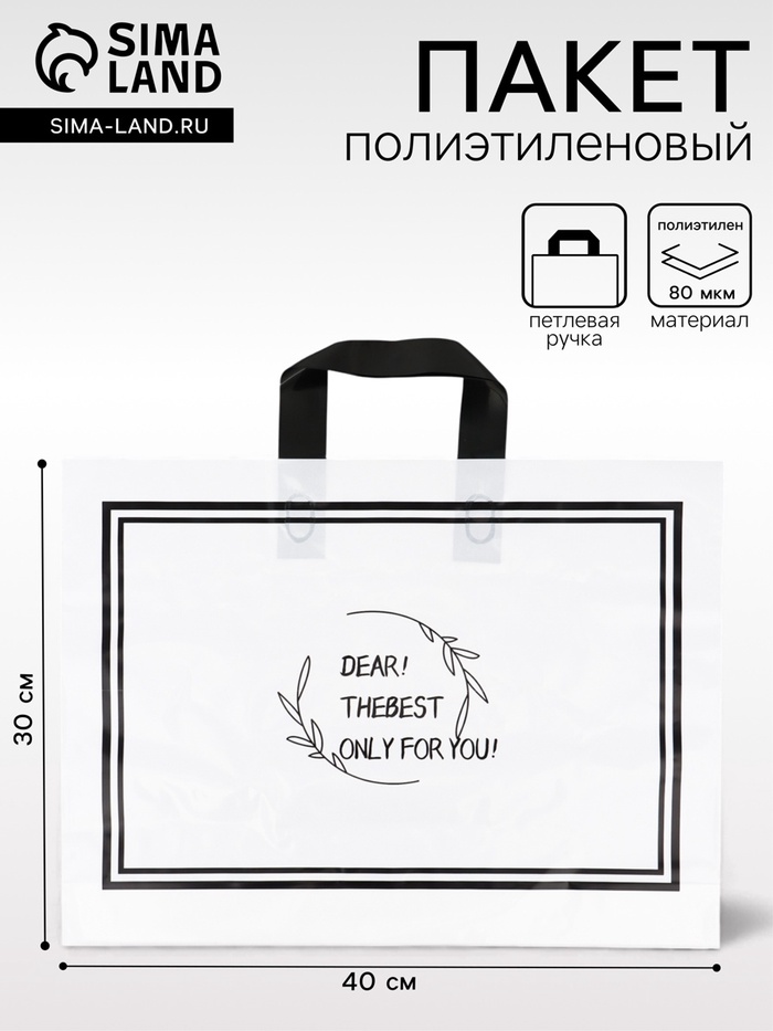 Пакет с петлевой ручкой, полиэтиленовый, белый 40×30×8 см 80 мкм