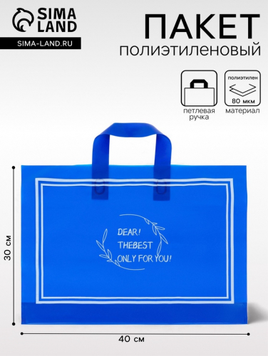 Пакет с петлевой ручкой, полиэтиленовый, синий 40×30×8 см 80 мкм