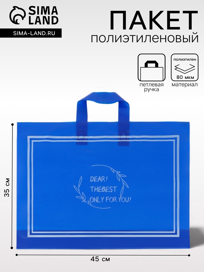 Пакет с петлевой ручкой, полиэтиленовый, синий 45×35×8 см 80 мкм