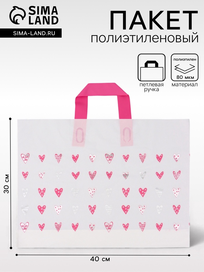 Пакет с петлевой ручкой «Сердечки», полиэтиленовый, 40×30×8 см 80 мкм