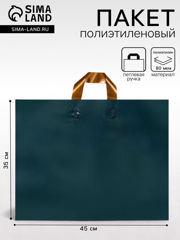 Пакет с петлевой ручкой зеленый 45×35×8 см 80 мкм