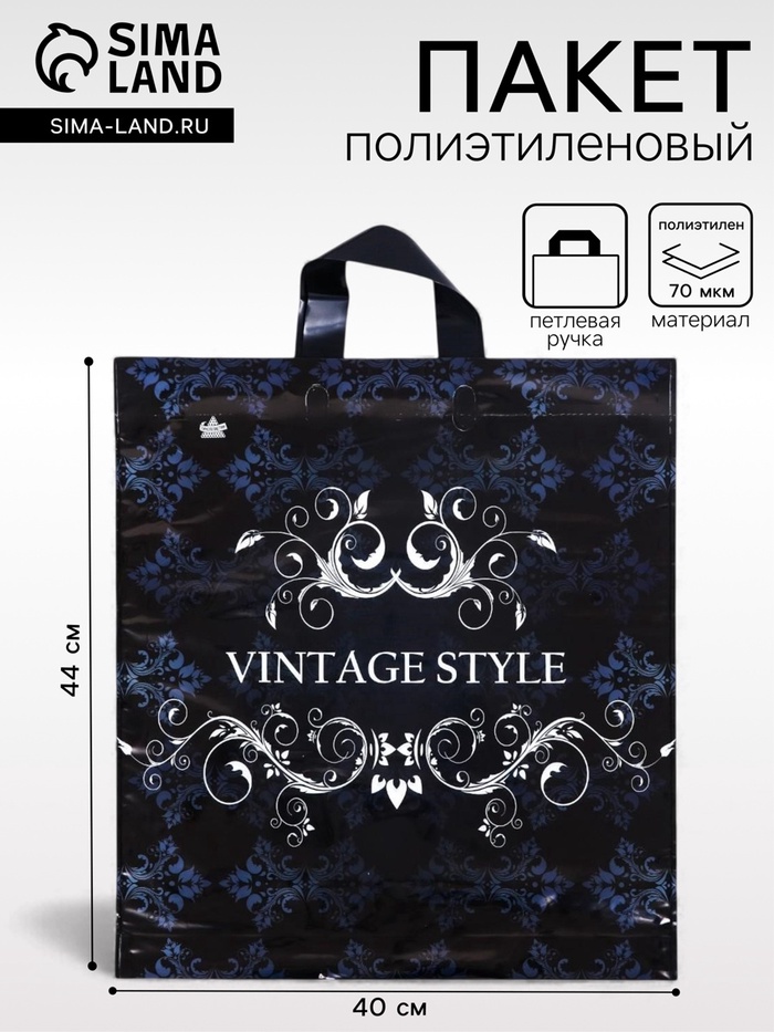 Пакет «Винтажный стиль», полиэтиленовый с петлевой ручкой, 44×40 см, 70 мкм
