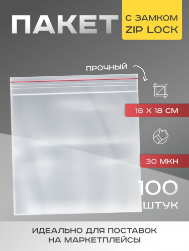 Пакет zip lock, для фасовки и упаковки, 18×18 см, 30 мкм
