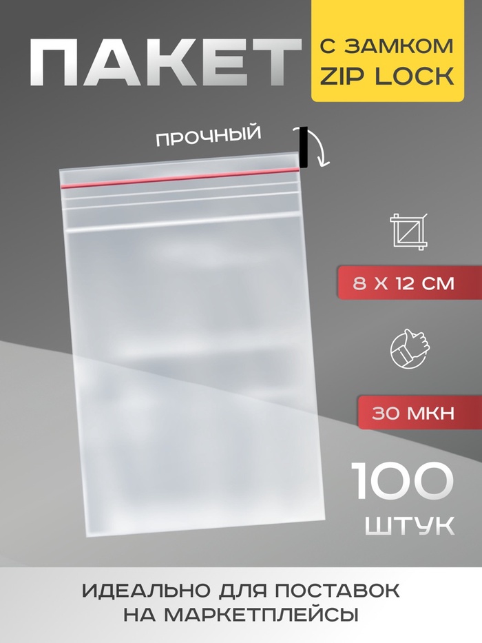 Пакет zip lock, для фасовки и упаковки, 8×12 см, 30 мкм