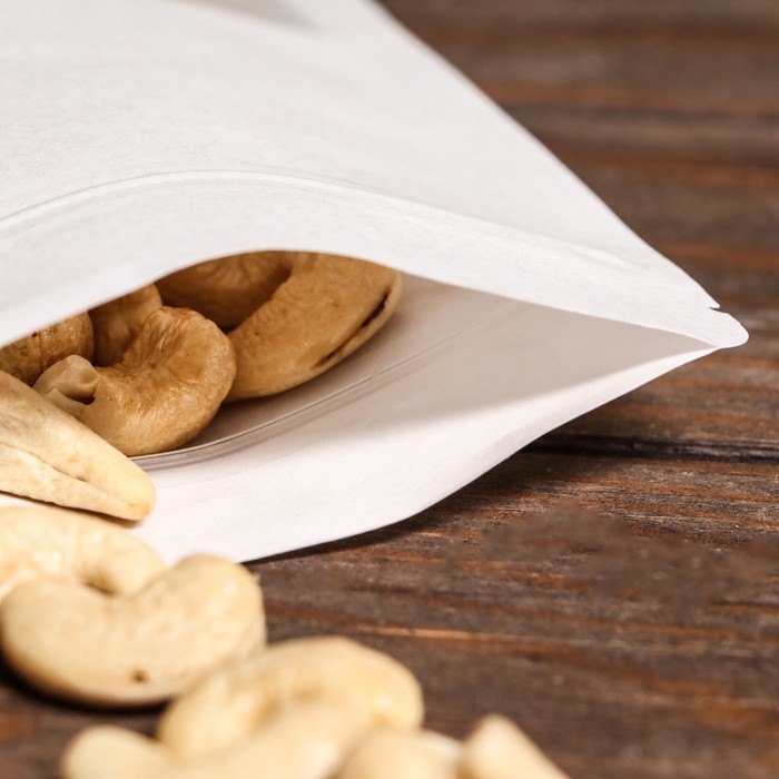 Пакет Zip-lock Крафт, белый, с прямоугольным окном, 12×20 см