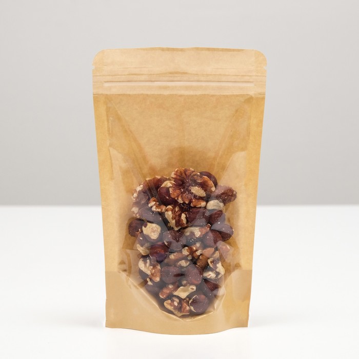 Пакет Zip-lock Крафт с прозрачной стенкой 12×20 + 4 см