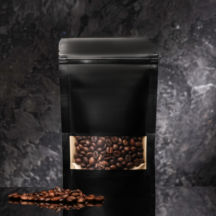 Пакет Zip-lock Крафт с прямоугольным окном, черный,12×20×4 см