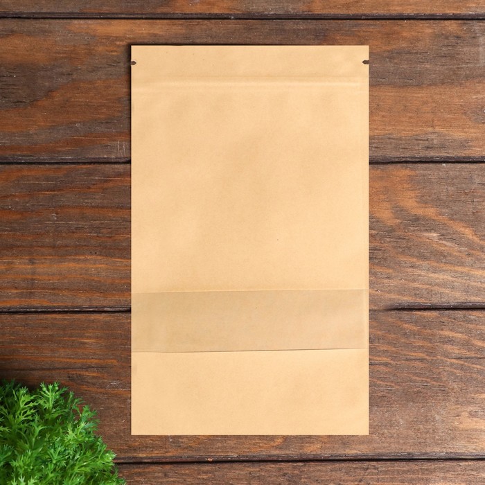 Пакет Zip - lock Крафт с прямоугольным окном, плоский, 16×26 см