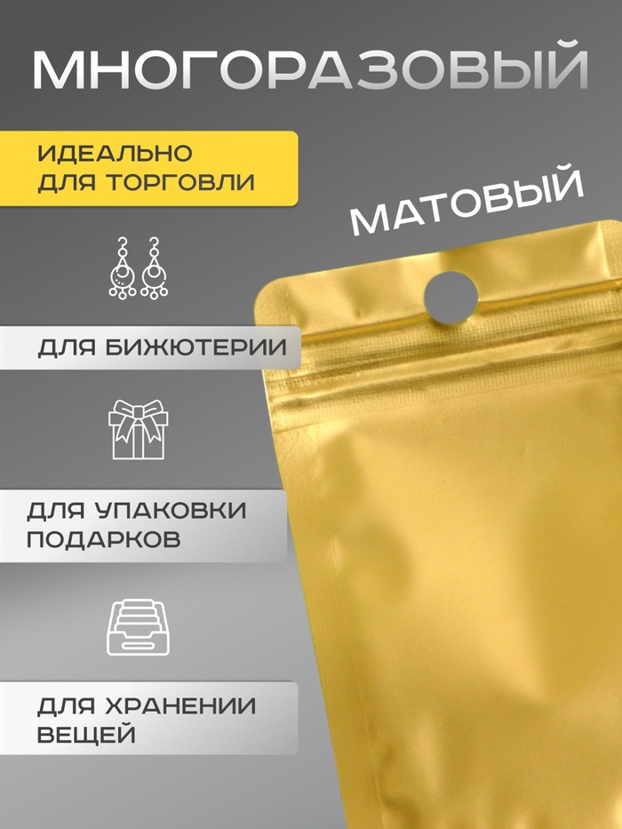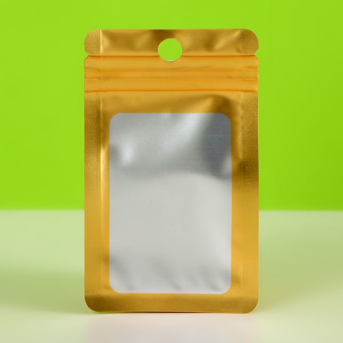 Пакет Зип-лок с окном, с еврослотом, золотой, 6×10 см