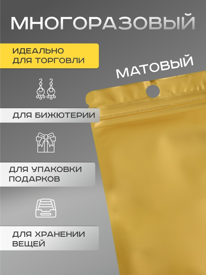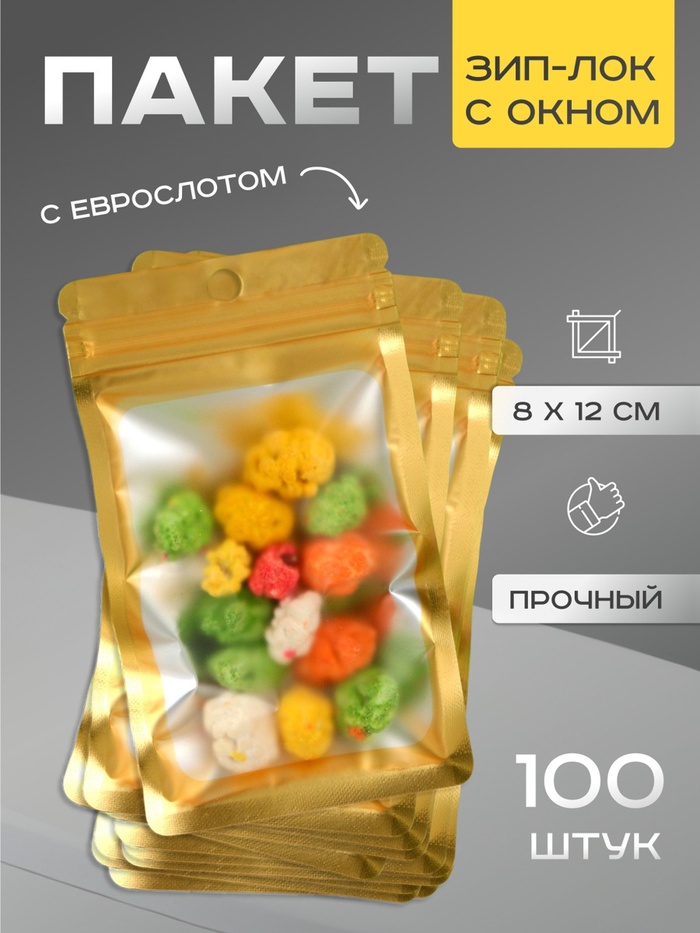 Пакет Зип - лок с окном, с еврослотом, золотой, 8×12±5% см