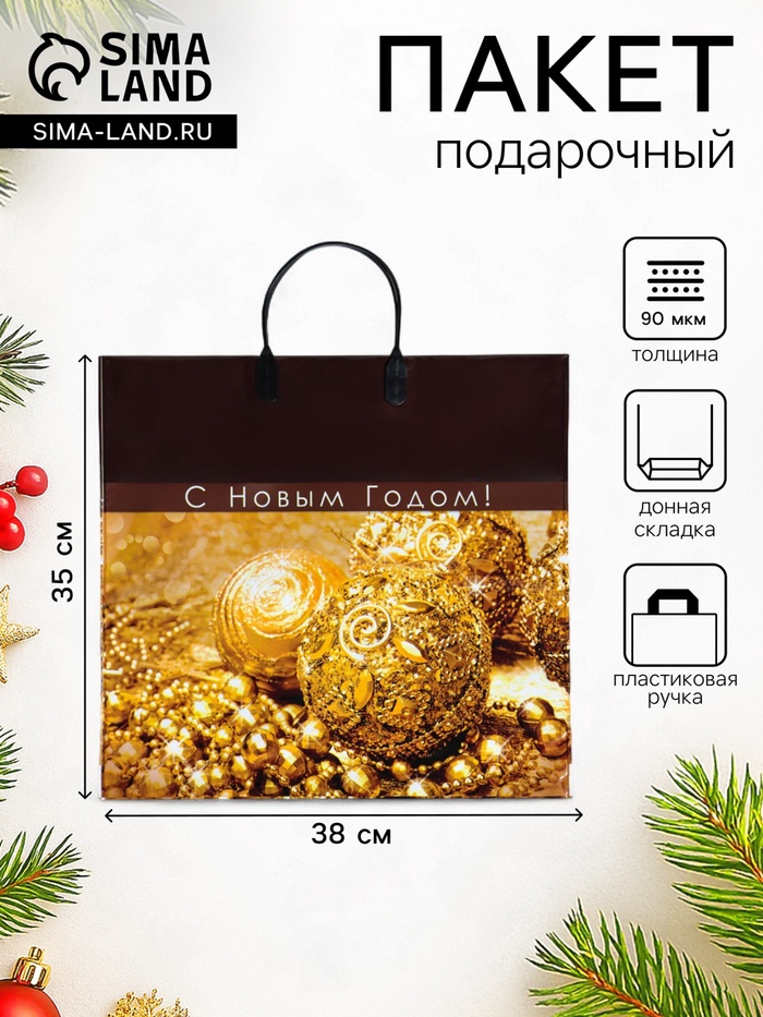 Пакет подарочный новогодний «Золотая сказка», полиэтиленовый с пластиковой ручкой, 38×35 см
