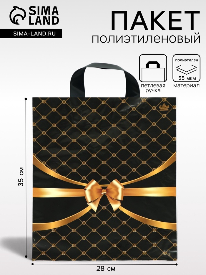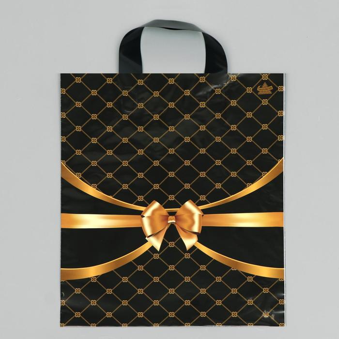 Пакет «Золотые сети», полиэтиленовый с петлевой ручкой, чёрный, 35×28 см, 55 мкм