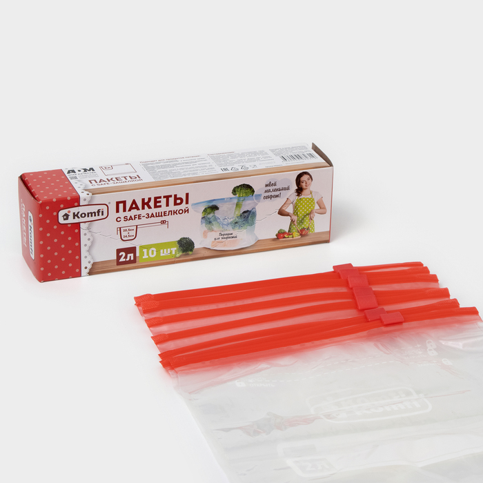 Пакеты с safe-защелкой 2 л, подходят для жидкостей, в наборе 10 шт.