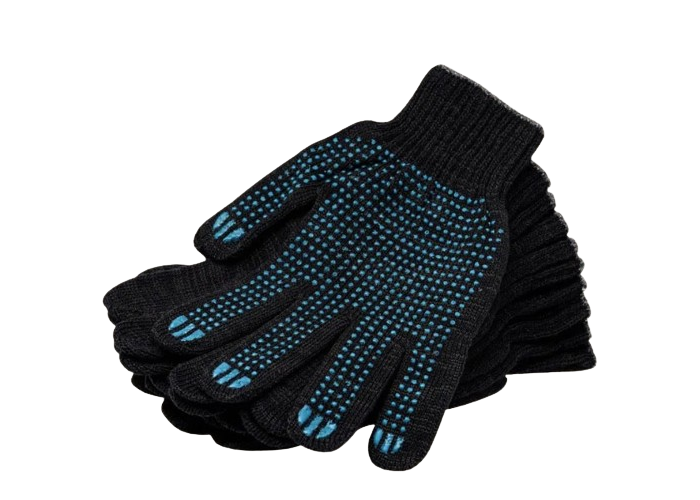 Перчатки 5 нитей х/б 10класс с ПВХ покрытием Капкан чёрные КРАТНО 10, цена за 1пару (уп.250)