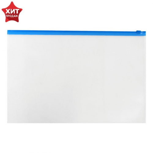 Папка-конверт на ZIP-молнии A4, 150 мкм, Calligrata, прозрачная, синяя молния