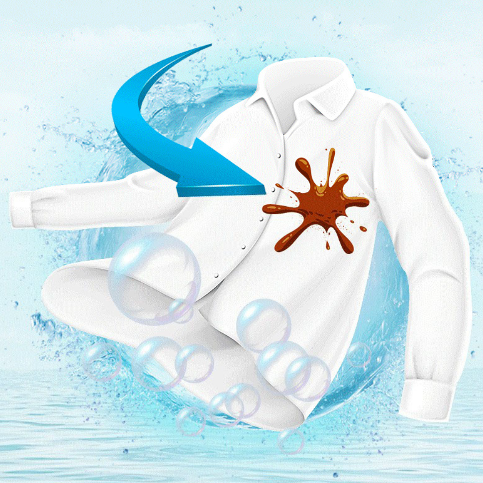 Пена деликатно очищает и выводит загрязнения такие как: кожный себум (воротники и манжеты), косметика (помада, тональный крем и т.д.), жир, грязь, пыль, следы еды и др.