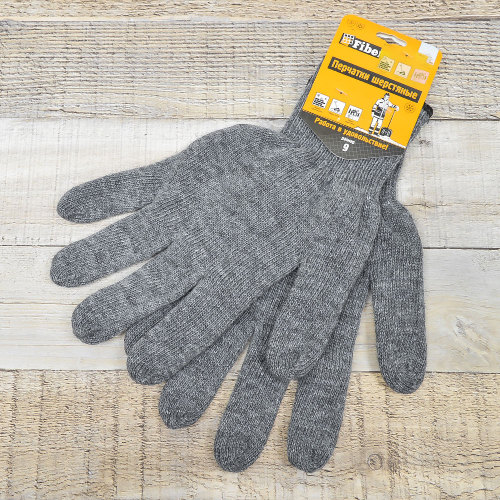 Перчатки вязанные шерстяные (70% шерсть+30% акрил с начесом) с точкой, 10 класс, серые, р.L, Fiberon