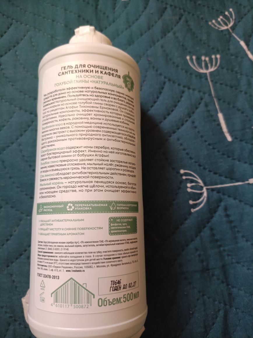 Жидкий, бесцветный. Раньше брала, был гуще и имел цвет бирюзовый.