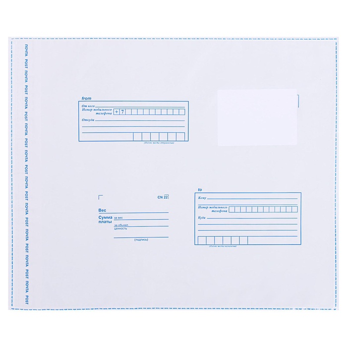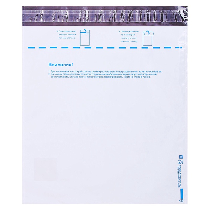 Почтовый пакет 320×355 мм, поле «Кому куда», отрывная лента, 60 мкм