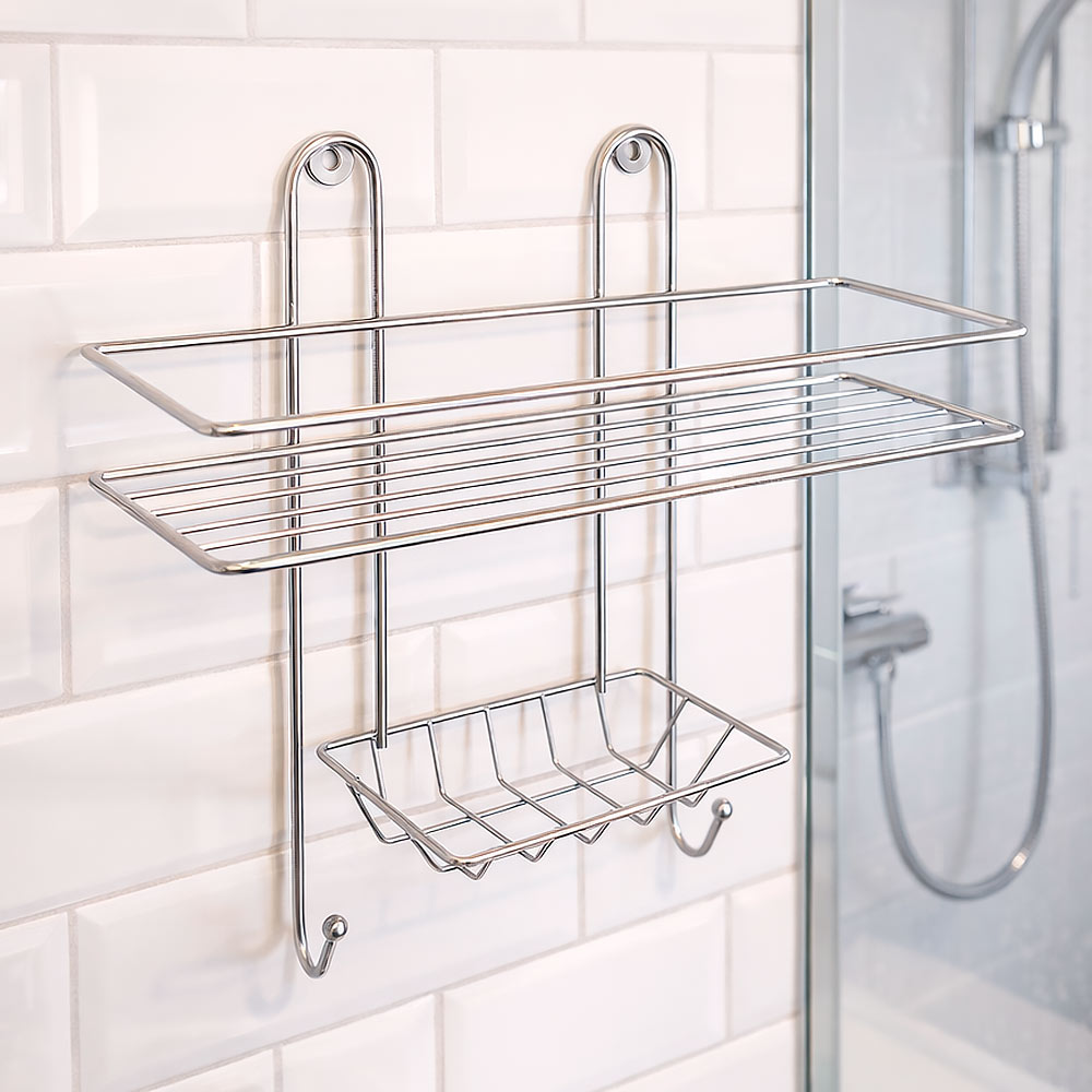 Полка прямоугольная 1-ярусная 26,5*10*27см с мыльницей и вешалкой хром, ППМ-1