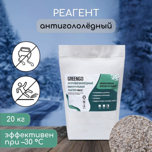 Реагент противогололёдный, мраморная крошка, галит, хлористый кальций, 20 кг, работает при – 30 °C, в мешке, Greengo