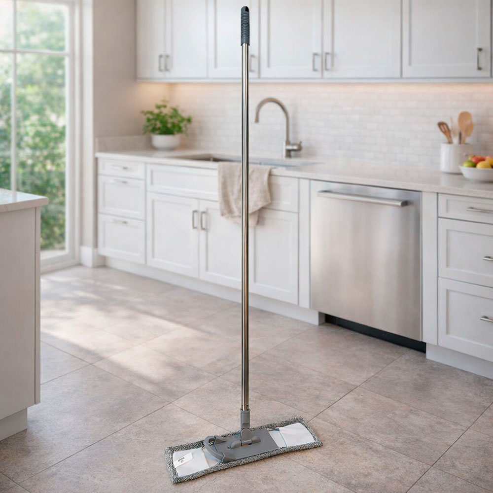 Швабра Флеттер с рычажком "Умничка" микрофибра бархат, рукоятка нерж