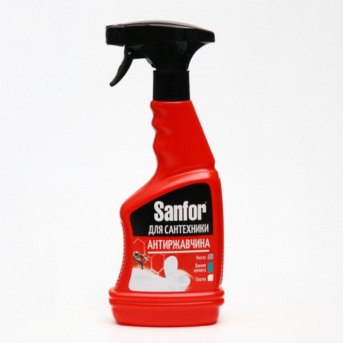 Sanfor - это большая линейка чистящих средств по уходу за ванной комнатой. Эффективная формула спрея Sanfor "Антиржавчина" легко и быстро удаляет известковый налет, ржавчину, въевшуюся грязь, уничтожает бактерии и микробы, устраняет неприятные запахи. Максимальный эффект чистки обеспечивает комплекс кислот в составе. Чистящее средство предназначено для чистки и ухода за ваннами, раковинами, кафельной плиткой. Спрей обладает антимикробным эффектом и подходит для ежедневного применения. Безопасность, экономичный расход и удобство в использовании обеспечивает удобный мультитриггер "спрей-пена" с блокиратором. Sanfor "Антиржавчина" - это гигиеническая чистота и свежесть ванной комнаты!