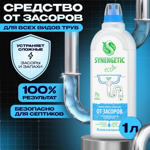 Концентрированное средство для устранения засоров SYNERGETIC - высокоэффективное средство, подходящее для любых видов засоров и канализационных труб.
