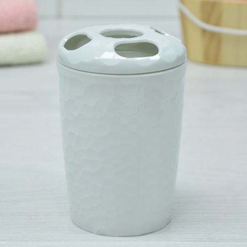 Стакан для зубных щеток "Tule", светло-серыйУниверсальный стакан для зубных щеток отличается оригинальным декором стенок, дизайн напоминает эффект струящейся воды или вид обработанного природного камня, что придаст изюминки интерьеру ванной комнаты.Заключаем договора по 44 ФЗ, 223 ФЗ