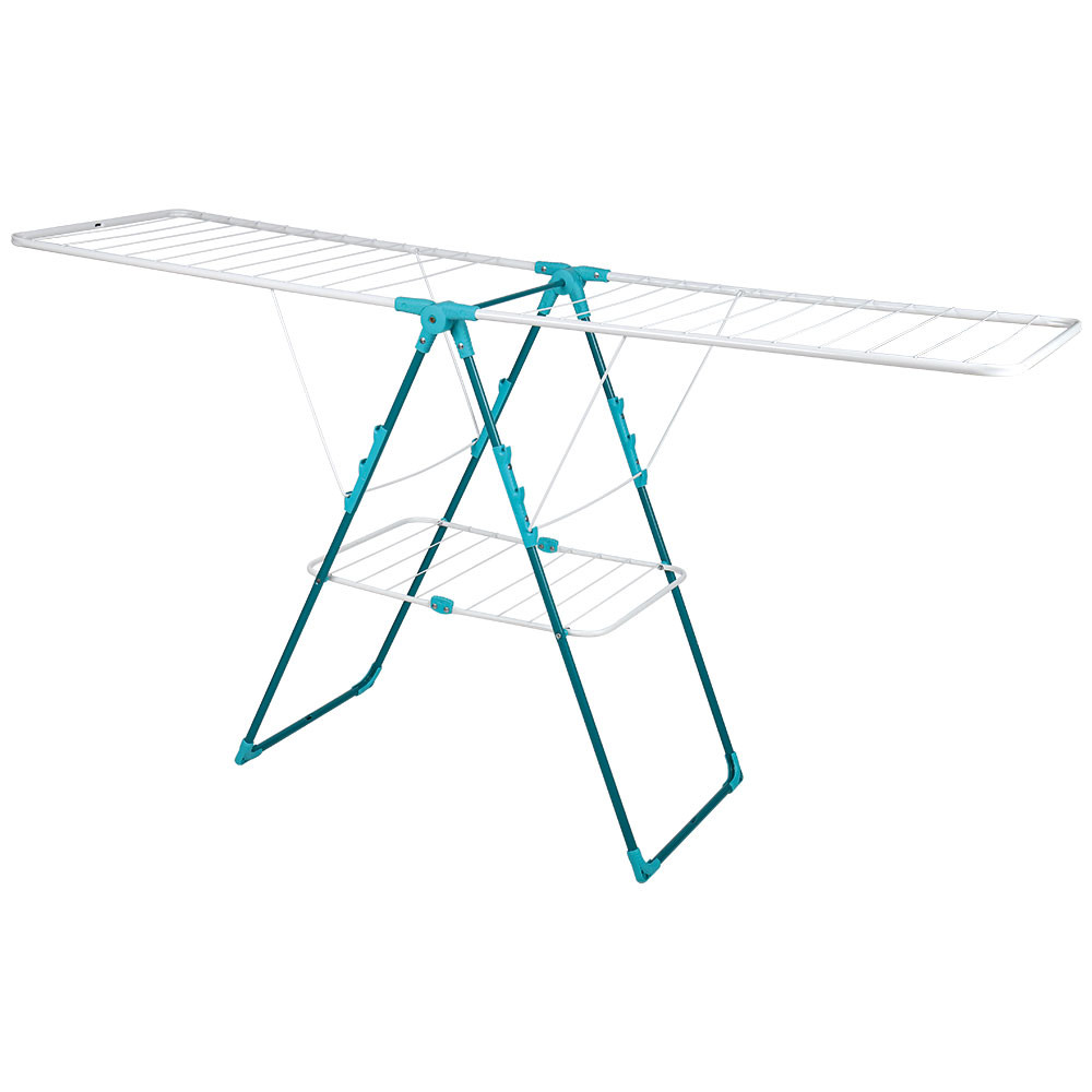 Удобная складная сушилка с полкой Преимущества: поперечное расположение сушильных прутьев на распашных створках стальные струны с антикоррозийным покрытием пластмассовые наконечники на опорах подходит для использования в любых помещениях и на открытом воздухе сушилка компактна в сложенном состоянии и вместительна в развернутом длина сушильного полотна 21м максимальная нагрузка не более 15 кг Габаритные размеры: в разложенном виде (ДхШхВ): 1815х515х930мм в сложенном виде (ДхШхВ): 1005х515х70мм Вес: 4,22кг