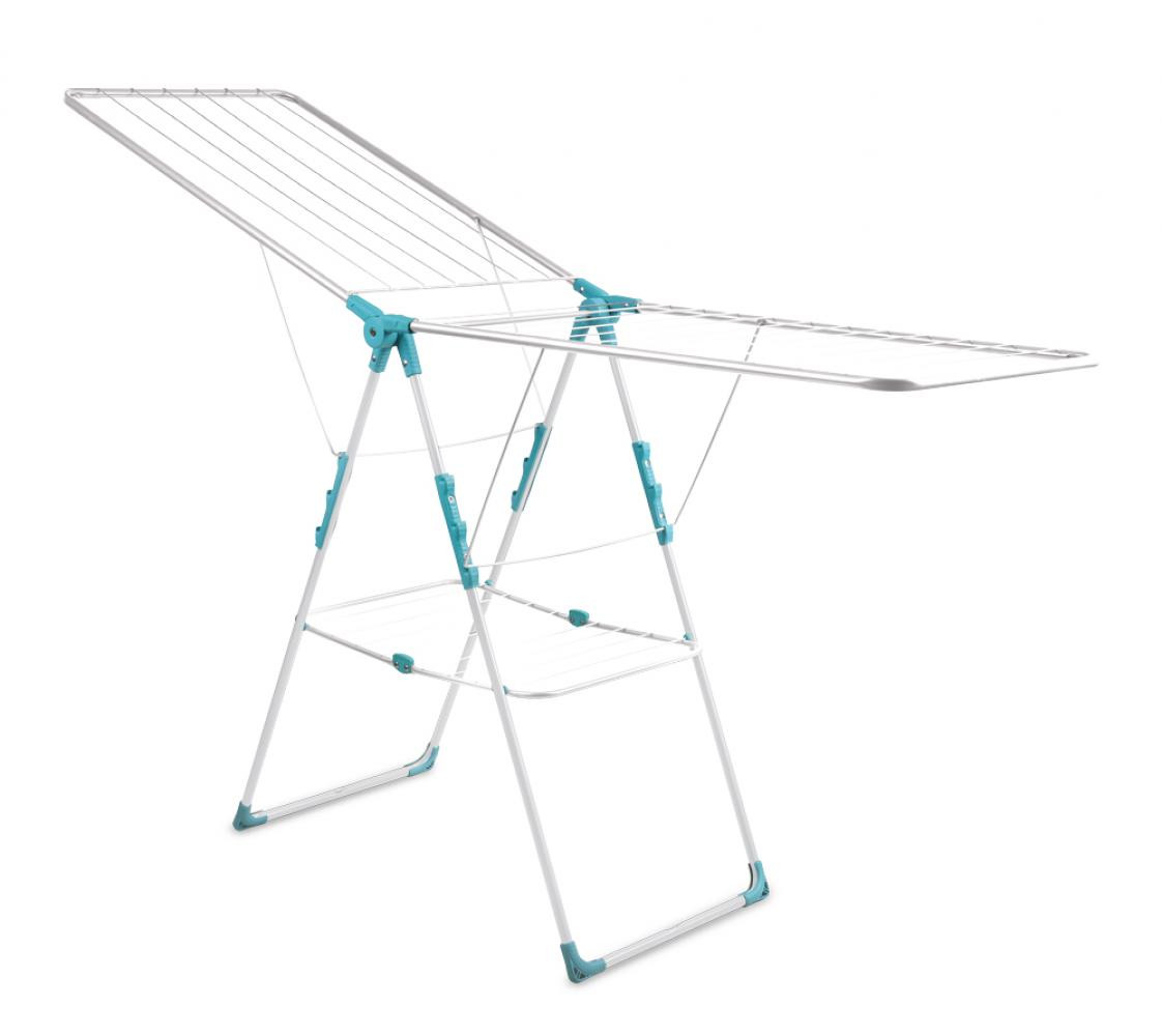 Как на фото Удобная складная сушилка с полкой Преимущества: поперечное расположение сушильных прутьев на распашных створках  стальные струны с антикоррозийным покрытием пластмассовые наконечники на опорах подходит для использования в любых помещениях и на открытом воздухе сушилка компактна в сложенном состоянии и вместительна в развернутом длина сушильного полотна 21м максимальная нагрузка не более 15 кг Габаритные размеры: в разложенном виде (ДхШхВ): 1815х515х930мм  в сложенном виде (ДхШхВ): 1005х515х70мм Вес:  4,22кг  Цвет:  в ассортименте