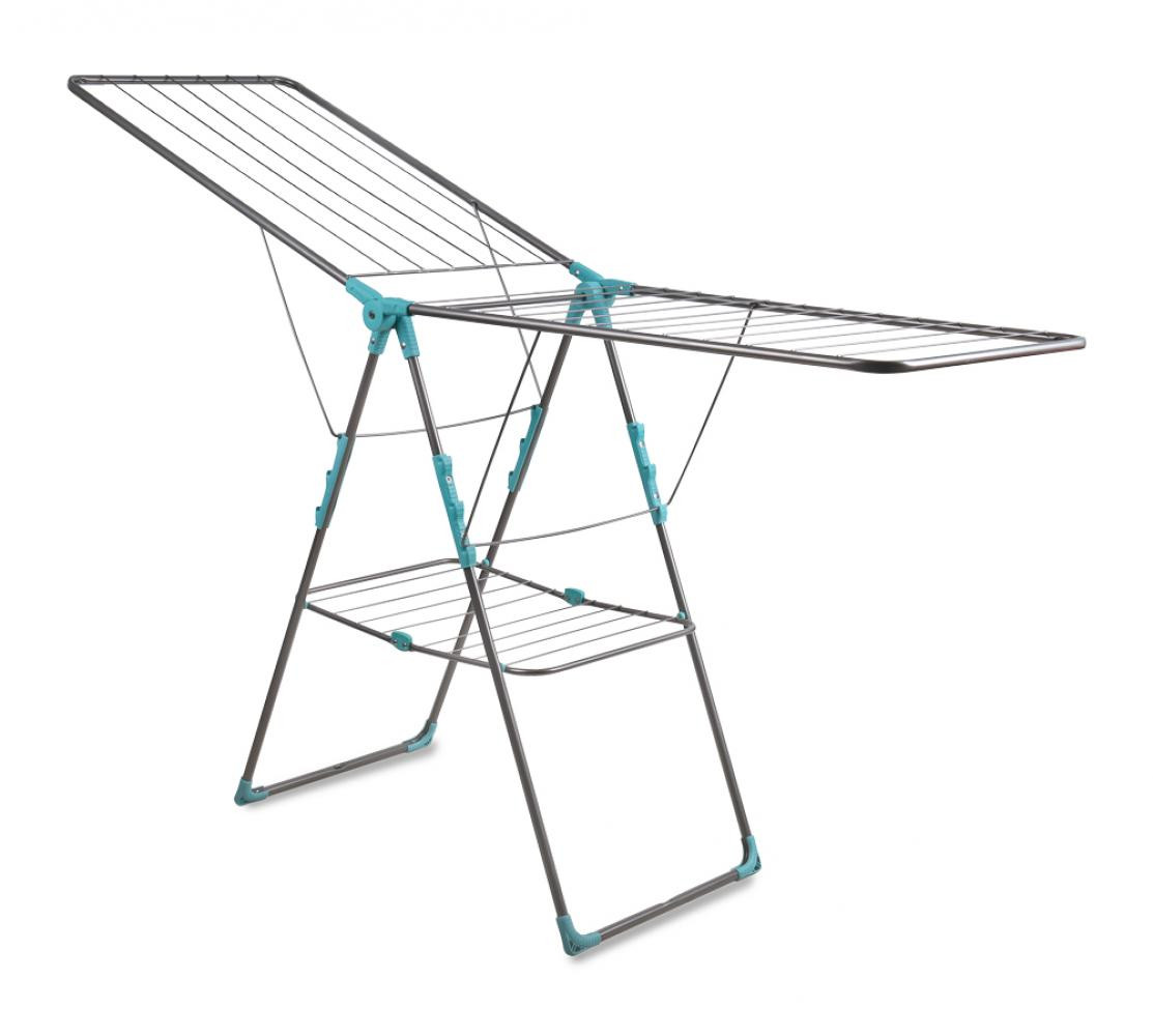 Как на фото Удобная складная сушилка с полкой Преимущества: поперечное расположение сушильных прутьев на распашных створках стальные струны с антикоррозийным покрытием пластмассовые наконечники на опорах подходит для использования в любых помещениях и на открытом воздухе сушилка компактна в сложенном состоянии и вместительна в развернутом длина сушильного полотна 21м максимальная нагрузка не более 15 кг Габаритные размеры: в разложенном виде (ДхШхВ): 1815х515х930мм в сложенном виде (ДхШхВ): 1005х515х70мм Вес: 4,22кг Цвет: в ассортименте