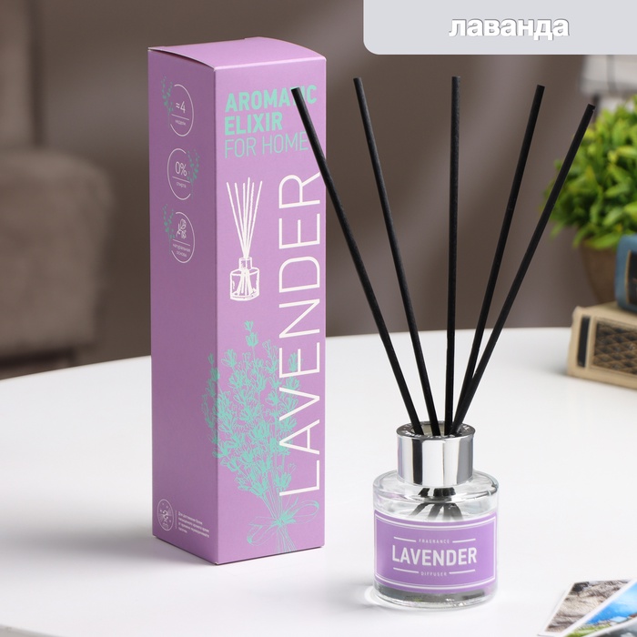 Ароматический диффузор превращает любое пространство в бесконечное поле цветов. С его помощью вы можете наслаждаться ароматом до 4 недель, охватывая площадь в 15 м². Комплект включает 6 лиловых фибровых палочек, позволяющих регулировать интенсивность аромата.