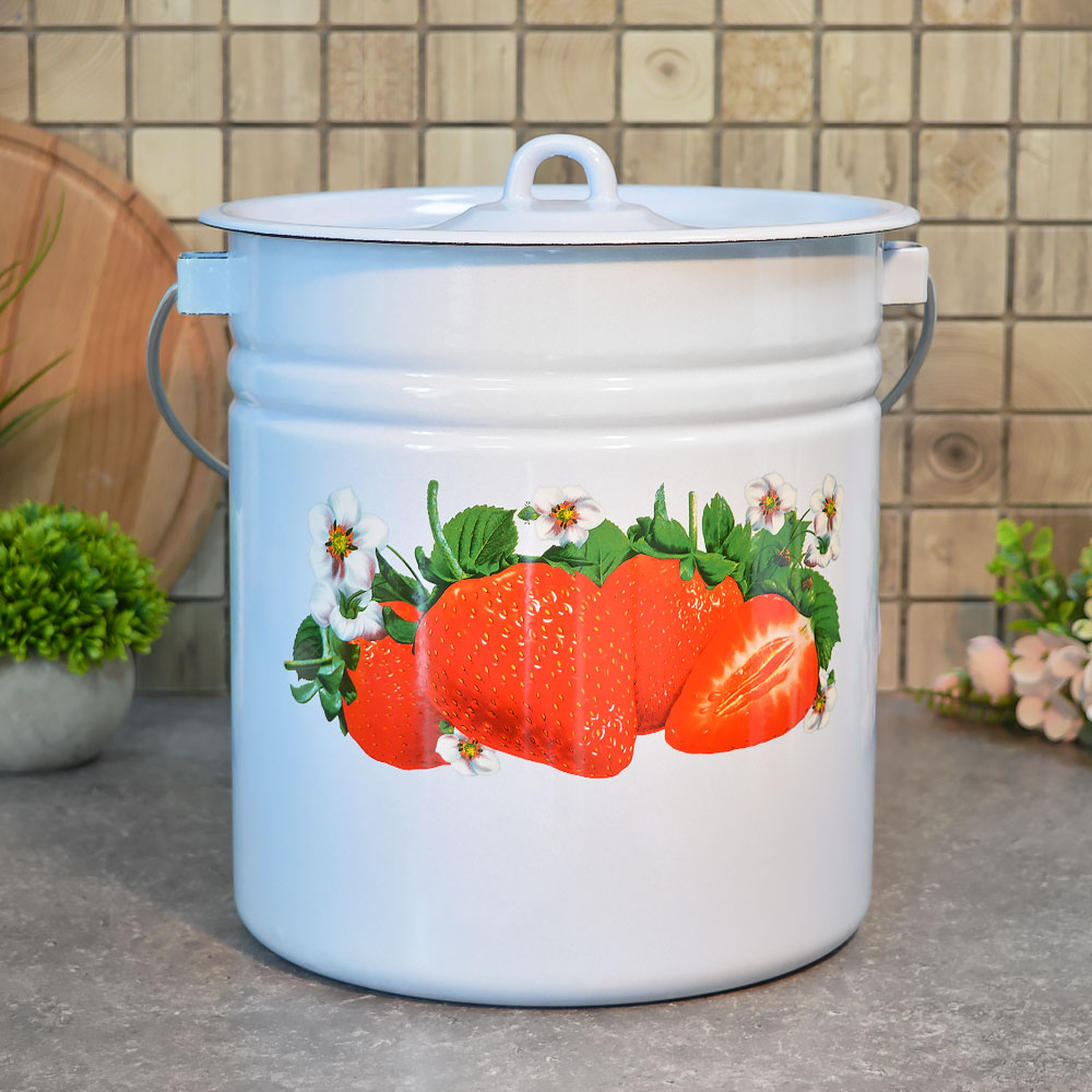 Ведро 12л эмалированное цилиндр. с крышкой с рисунком