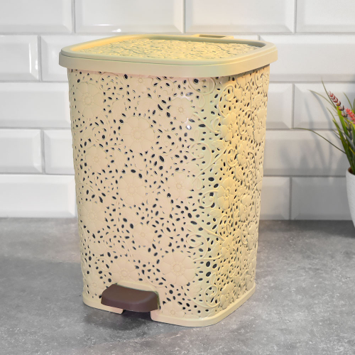 Ведро для мусора 12л с педалью "Ажурное", цвет бежевый