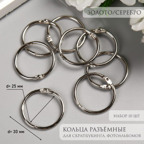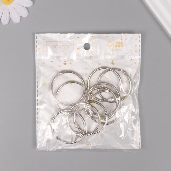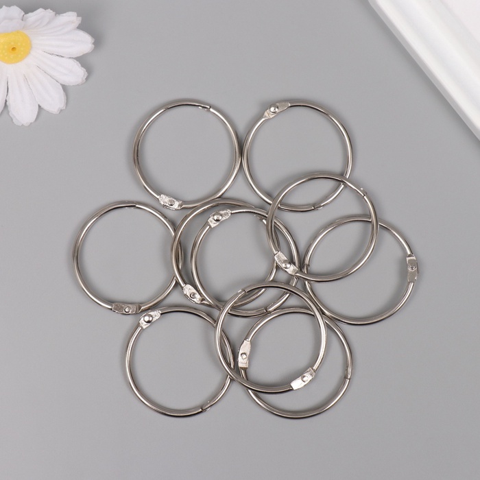 Кольца для творчества (фотоальбомов) «Серебро», внутренний d=3.5 см, внешний d=4 см, набор 10 шт.