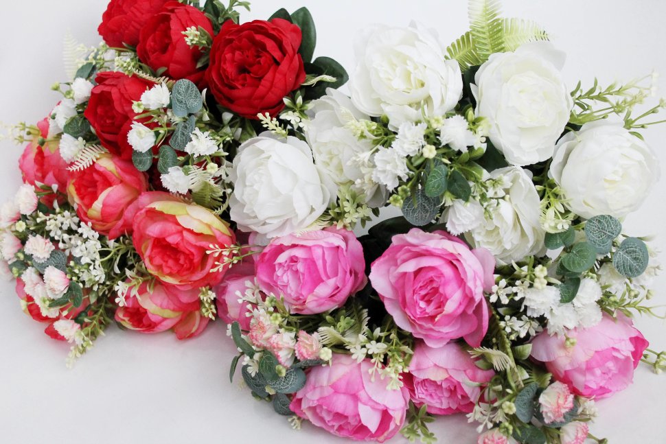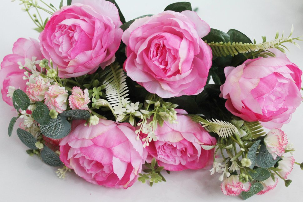 Б11936 Б/С Букет пионов 9 вет.с доб.и эвкалипт."Сопрано"47см