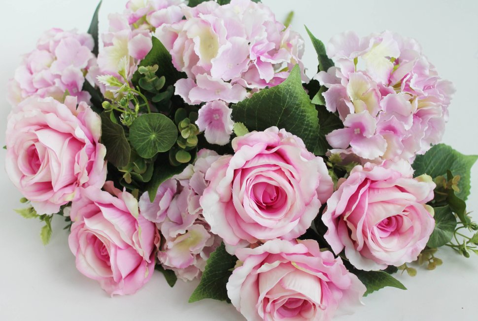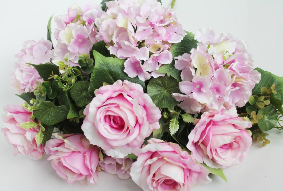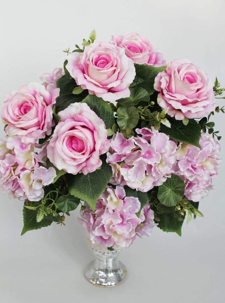 Б11952 Б/С Куст-композиция 5гол.гортенз.и 5гол.розы с добавками 65см