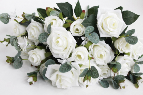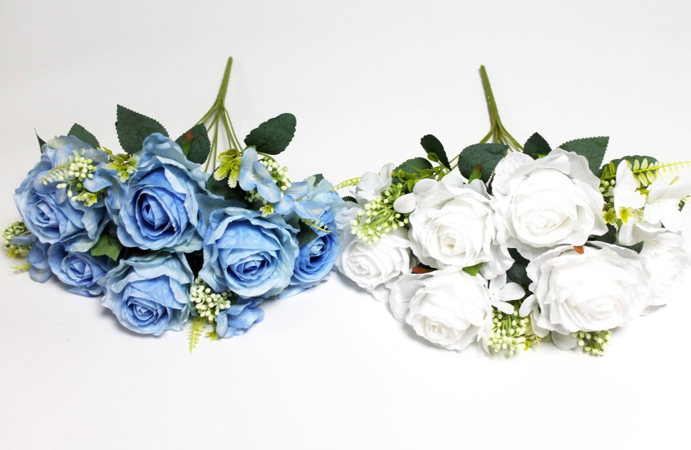 Б12149 Б/С Букет крупгоголовых роз 10вет.с добав."Свадебный"Н49см