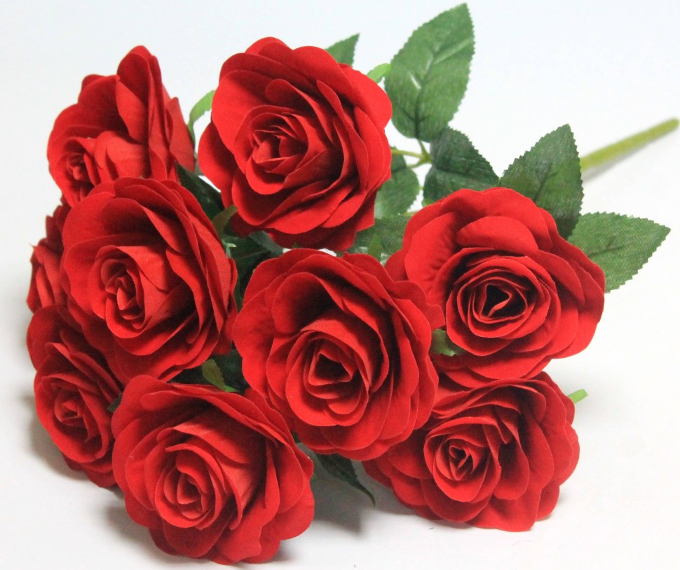 Б12163 Б/С Букет чисто бархтная роза 9 гол."Сильвия"45см(10шт)