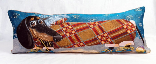 Баловни такса с зонтиком- гобеленовая наволочка