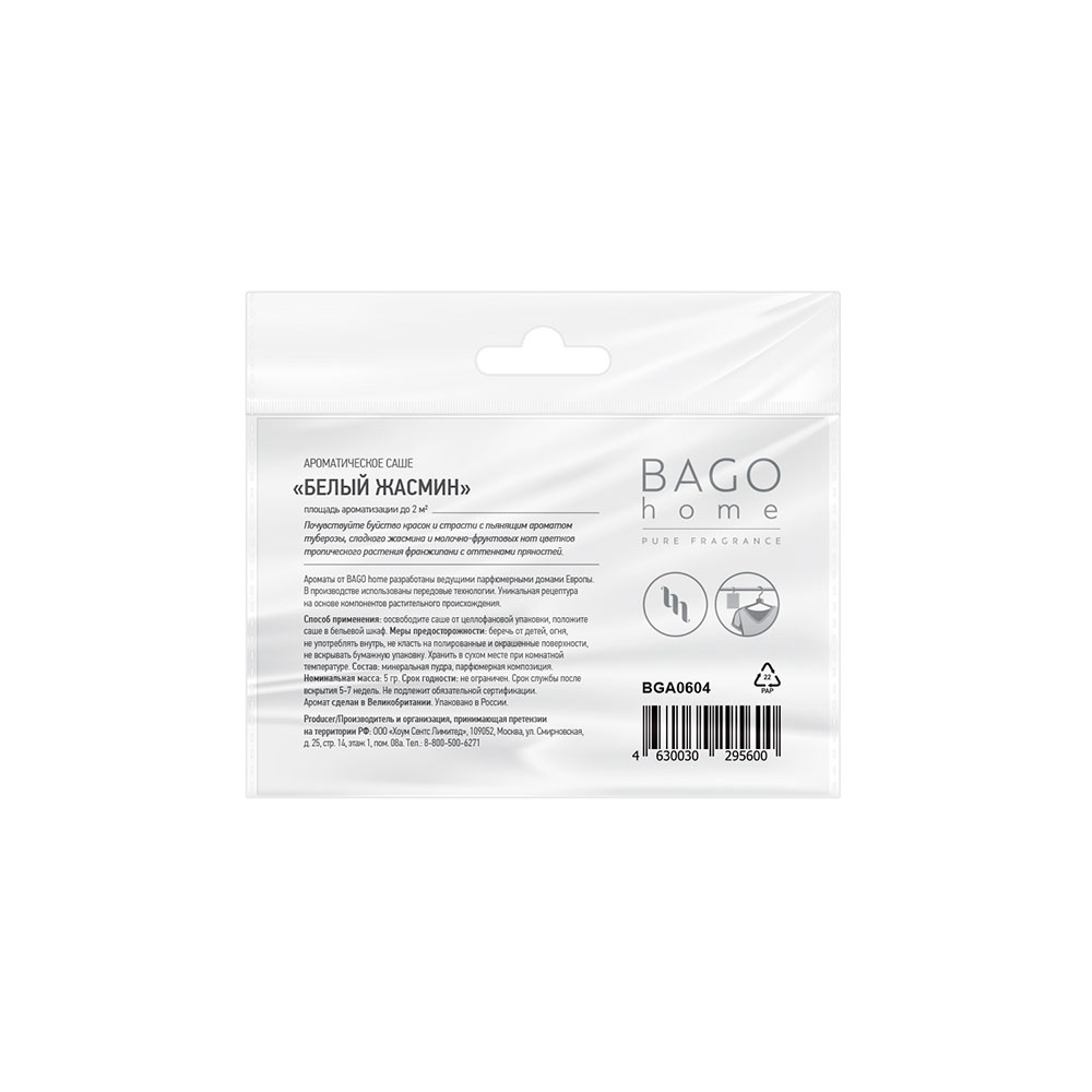 Страна производства аромата: Великобритания; Производитель: BAGO home; Коллекция: Акварель; Название аромата: Белый жасмин; Состав: Вермикулит, парфюмерная композиция; Страна производства: Россия; Вес, кг: 0,011; Размер: 11 х 0,5 х 7,5 см
