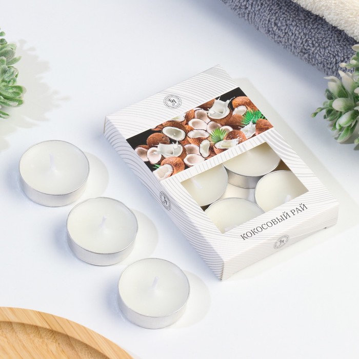 Набор свечей ароматических чайных «Кокосовый рай», в подарочной коробке, 6 шт.