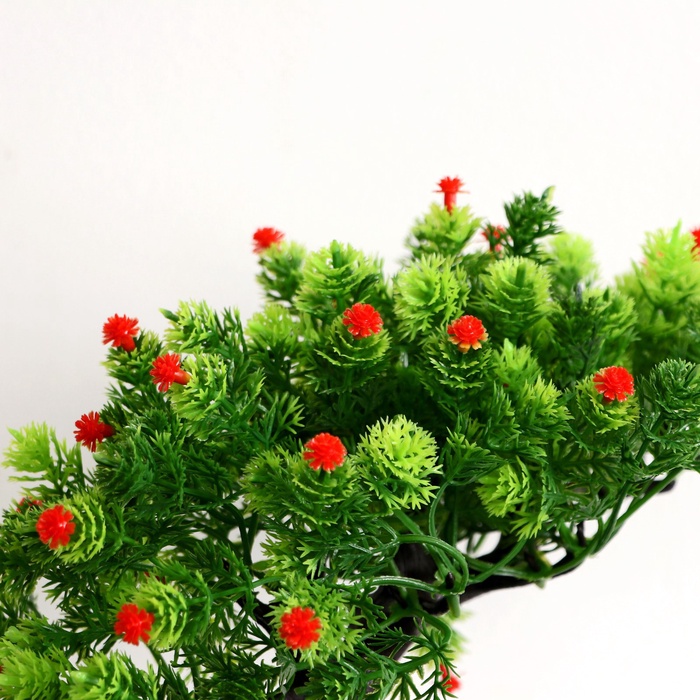 Этот искусственный бонсай служит отличной альтернативой живым растениям, позволяя создать природную атмосферу без хлопот. Он помогает оживить пространство, добавляя зелень и уют. Такой элемент подойдет для тех, кто ценит эстетику и практичность в домашнем или офисном оформлении.