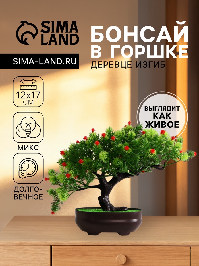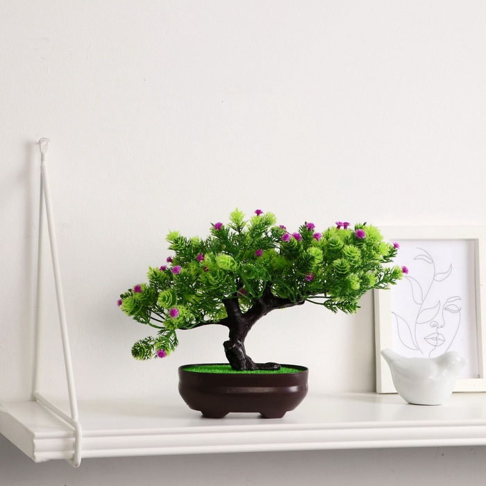 Мини-бонсай в горшке — это искусственное деревце, которое станет стильным и практичным украшением любого пространства. Его компактные размеры и натуральный дизайн создают ощущение живого растения, при этом не требуют ухода и постоянного внимания.