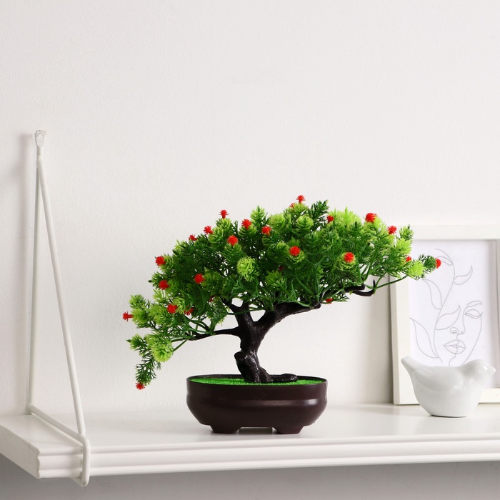 Мини-бонсай в горшке станет хорошим подарком или дополнением к интерьеру. Его легко сочетать с другими декоративными элементами и не требует специальных условий ухода. Идеально подходит для тех, кто хочет украсить помещение зеленью без необходимости полива или освещения.