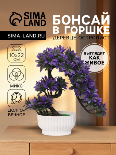 Бонсай искусственный в горшке «Деревце остролист», 10×22 см, МИКС