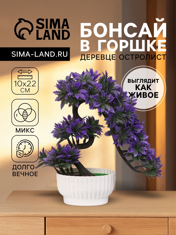 Бонсай в мини-горшке — это искусственное деревце, которое станет стильным украшением интерьера. Его компактный размер и натуральный внешний вид создают ощущение живого растения, при этом не требуют ухода и постоянного внимания.